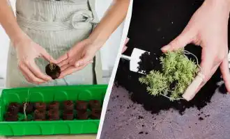 Lägg näringsrik bark i botten av en större behållare, sätt ner växten och täck rötterna lätt med den återstående barken.
