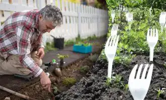 Ett föga uppmärksammat men effektivt sätt att skydda trädgården från djur är att sätta in plastgafflar med pinnarna uppåt mellan växterna.